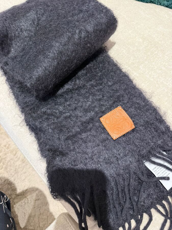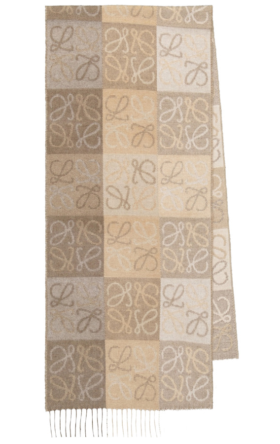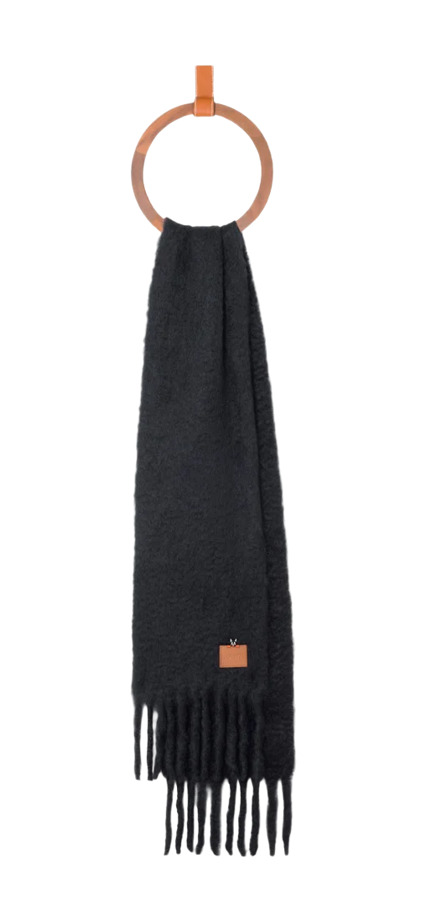 Add artful flair with this Loewe mohair-wool blend scarf, inspired by Louis Wain’s Futurist Cats. Featuring a medium-weight knit, fringed edges, and a playful enamel-and-brass cat pin, it’s finished with a signature embossed leather patch. A statement accessory that blends warmth, creativity, and iconic Loewe craftsmanship.
