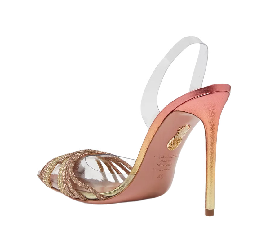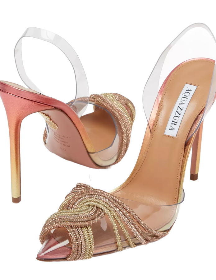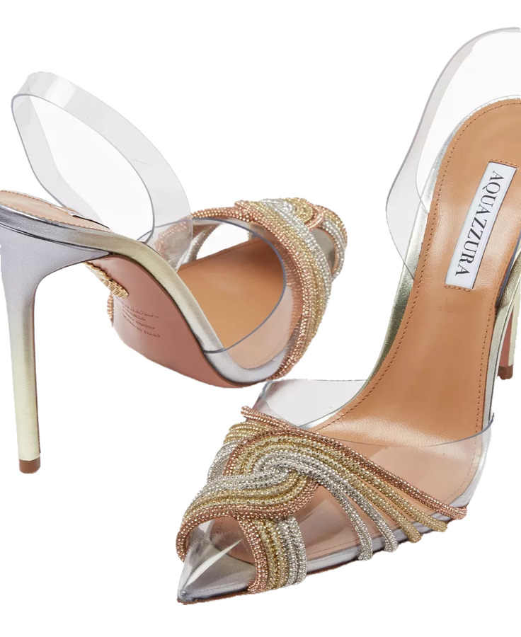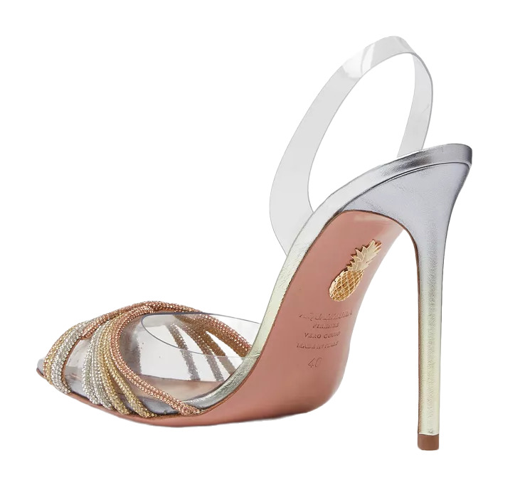 Crafted exclusively for the Middle East, the Aquazzura Gatsby Pumps embody stylish seasonal flair. These slingback pumps feature elegant PVC panels that enhance your silhouette, paired with striking 105 mm heels for added height. Dazzling crystal braids provide a glamorous finishing touch, making these pumps the perfect accessory for elevating any ensemble at special occasions!