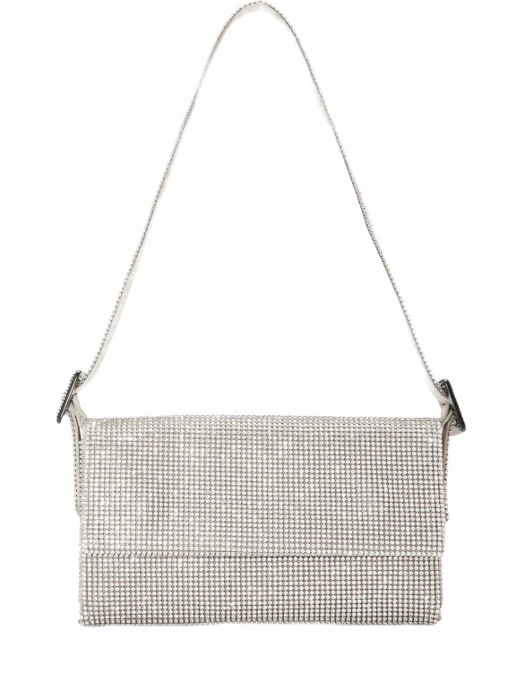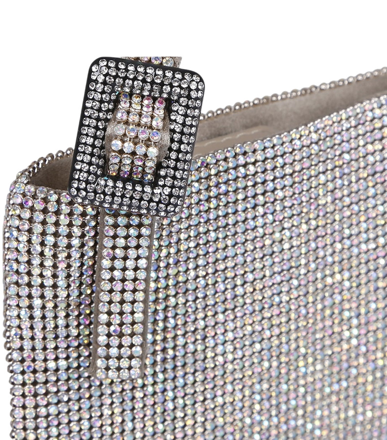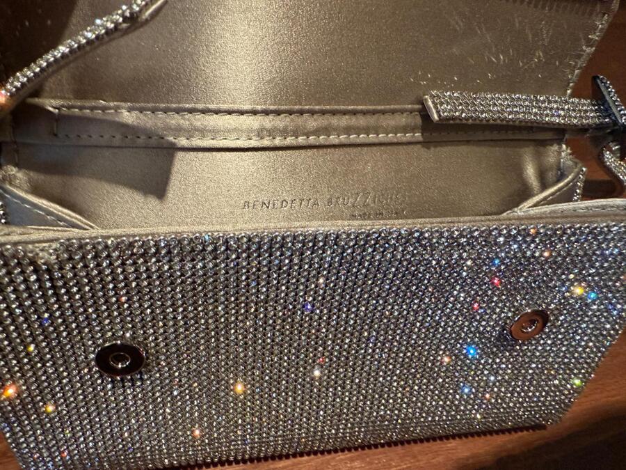 Shine bright with the Benedetta Bruzziches 'Vittissima Mini Bag. Adorned with all-over crystals and featuring a magnetic closure, this stunning bag embodies glamour. The adjustable handle offers versatility for any occasion. Made in Italy in a sophisticated silver finish, it's the perfect accessory to elevate your evening look!