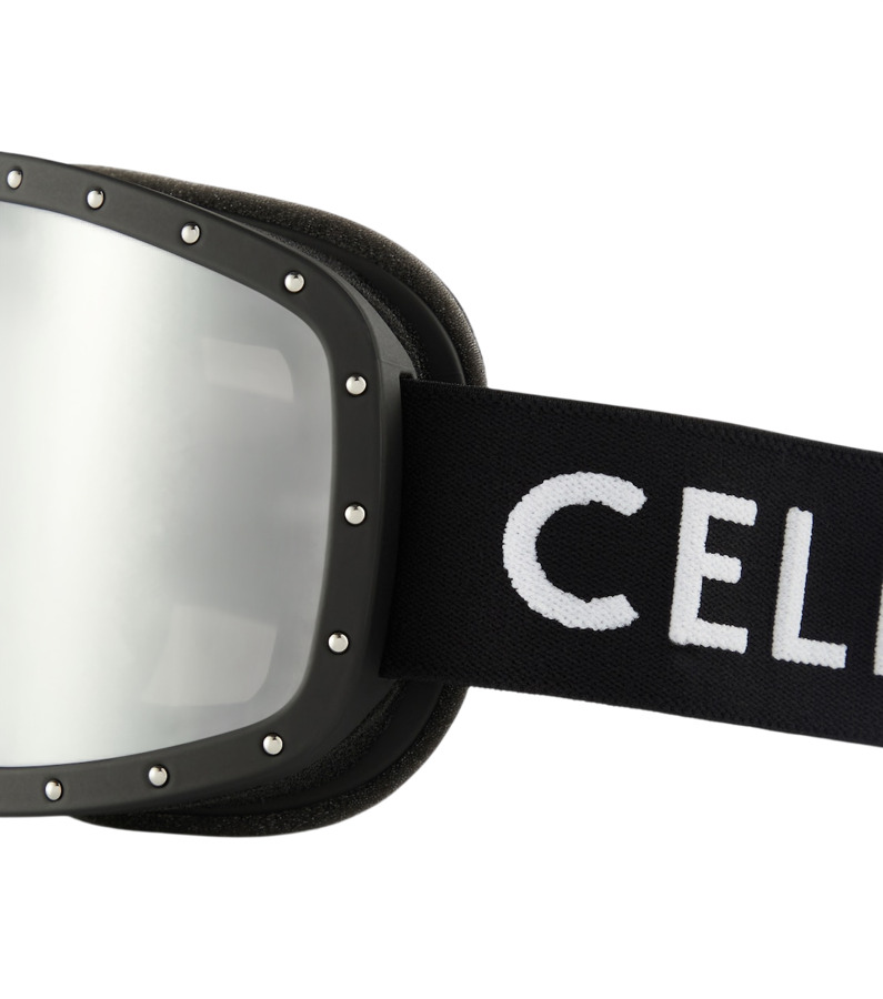 These Celine Eyewear ski goggles deliver a sophisticated finishing touch to your ski look. Designed with mirrored grey lenses for UV protection, they feature a sleek black and silver frame crafted from acetate and fabric. An adjustable logo-jacquard headband ensures a secure, high-performance fit—on and off the slopes.
