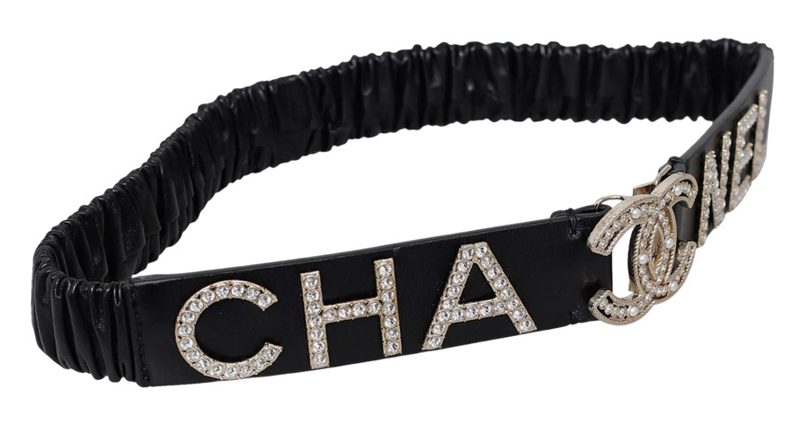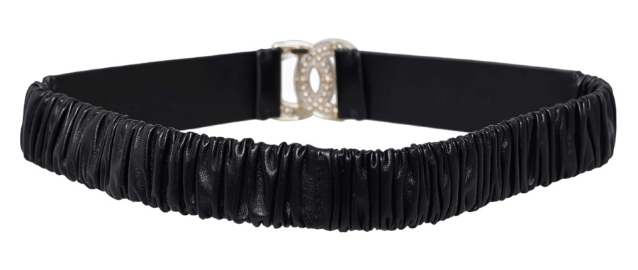 Elevate your accessories with the Chanel Black Logo Crystal Waist Belt! Crafted from luxurious lambskin leather and adorned with sparkling crystals and strass, this stunning piece adds a touch of glamour to any outfit. Made in Italy, it features the iconic Chanel logo, making it a chic statement piece for any occasion. Perfect for cinching your waist in style!