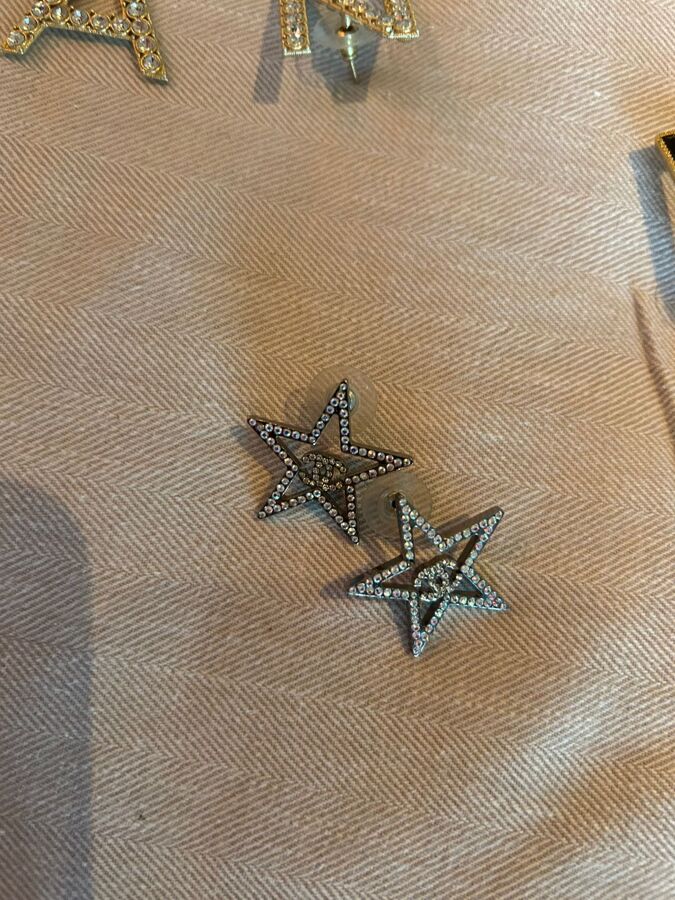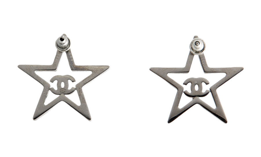 Introducing the Chanel Strass CC Star Stud Earrings from the Fall 2017 collection by Karl Lagerfeld. Featuring a stunning palladium-plated finish and adorned with sparkling strass, these earrings are a luxurious statement piece that adds a touch of elegance to any outfit. Perfect for both day and evening wear!