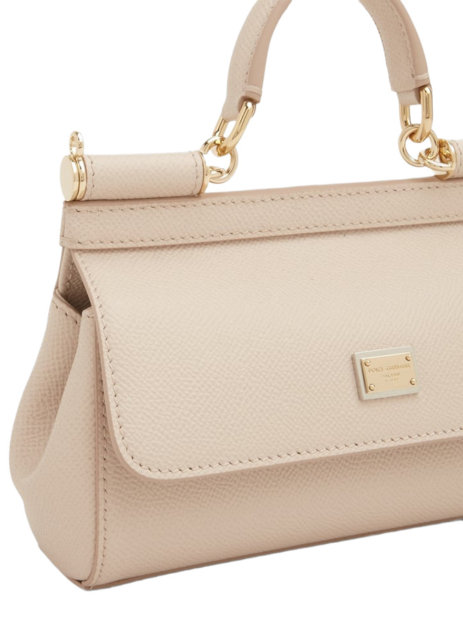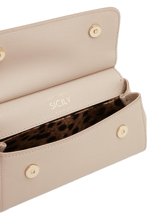 Prepare for your next European vacation with the iconic Sicily Bag by Dolce&Gabbana! Crafted in Italy from supple Dauphine calfskin leather, this stylish bag features a top handle and a logoed galvanic plate. With internal pockets for organization and a detachable shoulder strap for versatility, it measures approximately 11cm x 18cm x 6cm, making it the perfect blend of elegance and functionality!