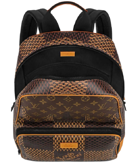 Discover the refreshed Louis Vuitton Campus Backpack! Made from Giant Damier Ebene canvas, it showcases Nigo's iconic dripping ice cream motif on classic Monogram coated canvas. This stylish backpack features textile lining, an inside duo pocket, and a flat pocket for easy organization. With natural cowhide leather trim, adjustable shoulder straps, and an external zip compartment, it perfectly blends fashion with functionality!