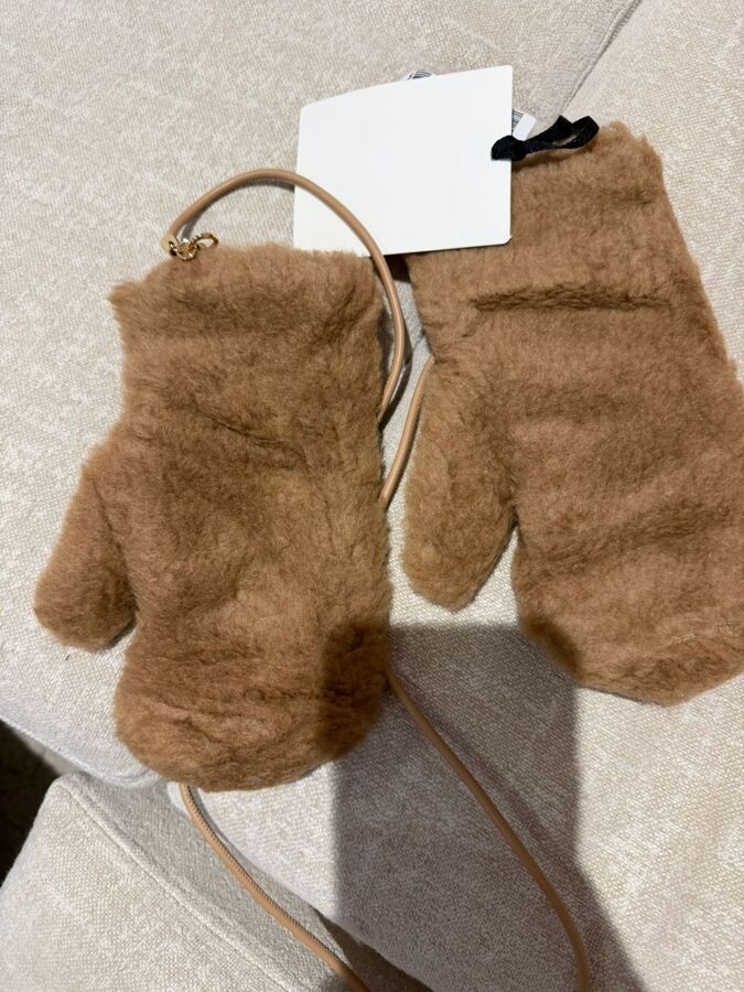 Stay cozy in luxury with Max Mara’s Ombrato Teddy Mittens. Crafted in Italy from ultra-soft camel hair with a plush teddy texture, these chic brown mittens are the ultimate cold-weather essential. Finished in a versatile biscuit-brown hue, they add effortless warmth and polish to any winter look.