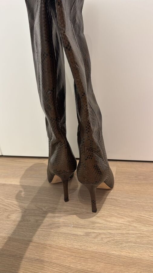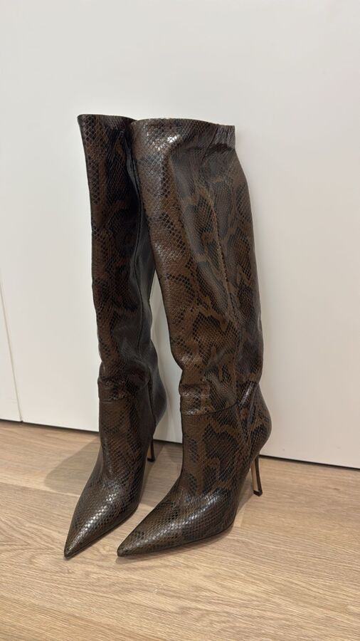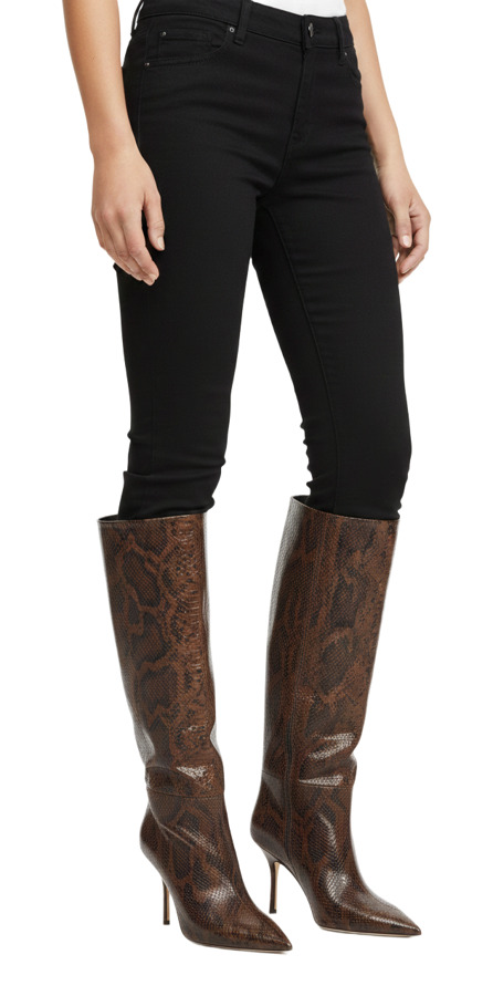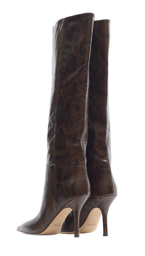 Step into fierce style with Paris Texas knee-high boots! The edgy snakeskin effect and pointed toe scream sophistication, while the covered stiletto heel takes your look to new heights. Slip them on effortlessly and strut with confidence. These boots aren’t just footwear; they’re a bold statement. Perfect for turning heads wherever you go!