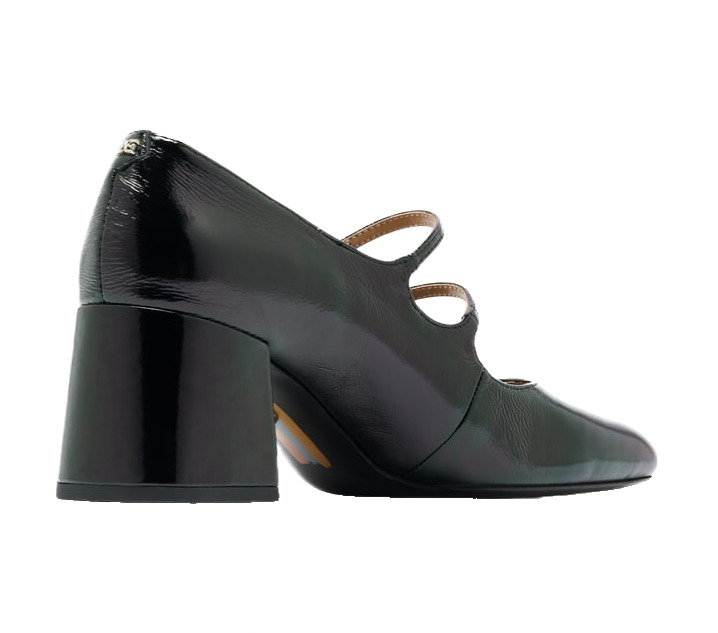 Introducing the Sarah Mary Jane, a modern twist on a classic with its stylish double-strap design and textured glossy leather finish. This shoe offers a delightful nod to retro elegance, complemented by a square toe and silver-tone hardware. The 6cm chunky heel provides comfort and lift, making these shoes perfect for any occasion.