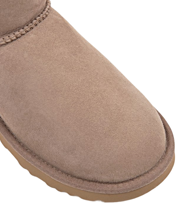 The UGG Classic Mini II Boots for women offer comfort and style with their short shaft design. Crafted from luxurious suede, these boots feature a soft lambskin inner lining that keeps your feet warm and cozy, regardless of the weather. The updated version boasts water and dirt-repellent properties and a specialized outsole for optimal cushioning and grip. Versatile and stylish, they pair effortlessly with a variety of outfits!