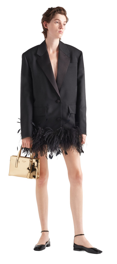 The label's crepe sleeveless top offers a party-ready update to the classic tank silhouette. Finished with tonal ostrich plumes, this statement piece features a back zip closure for easy wear.