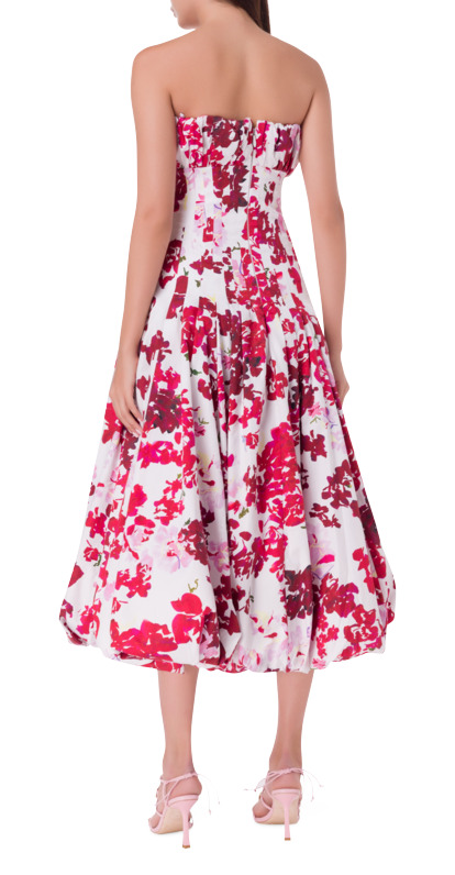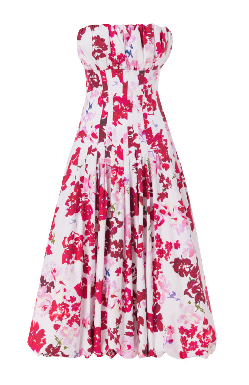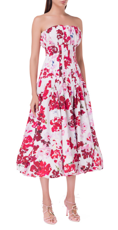 The Mathilde Bubble Hem Midi Dress invites you to twirl and pose, showcasing its joyful roses of Provence print. With a bubble-shaped gathered neckline that fits snugly at the waist, it flows into a voluminous bubble hem. A concealed zip fastening at the center back adds a discreet touch to this playful, elegant design.