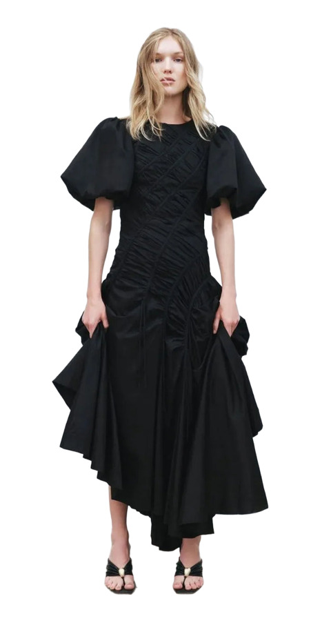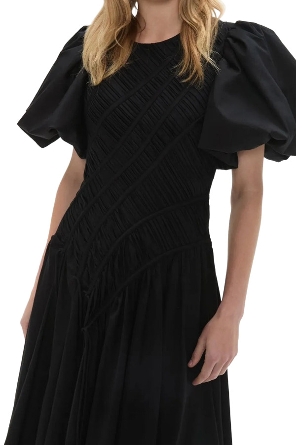 The Wisteria Cotton Midi Dress in black by Aje is your go-to for effortless style! Featuring a sleek silhouette crafted from soft cotton, this versatile dress is perfect for daytime outings or casual evenings. Its refined design makes it an ideal choice for everyday wear, ensuring you stay chic and comfortable no matter the occasion!