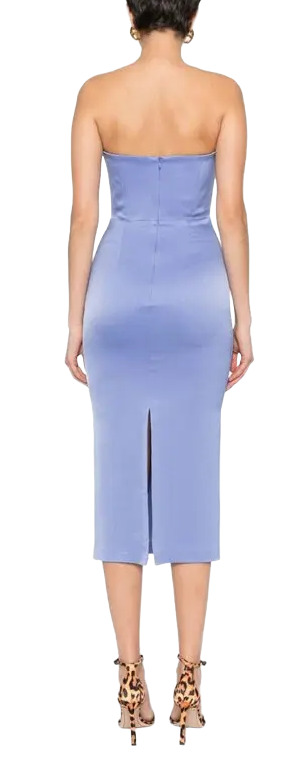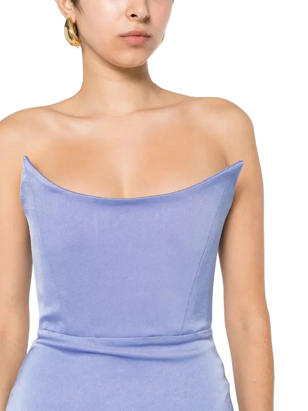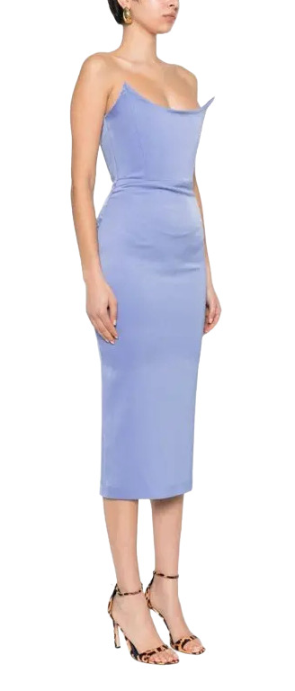 The Alex Perry dress is a stunning corset-style piece that boasts a curved bustier neckline and a fitted waistline for a flattering silhouette. Crafted from luxurious satin, it features a sleek rear slit and a concealed zip fastening at the back, making it both elegant and alluring—perfect for commanding attention at any event.