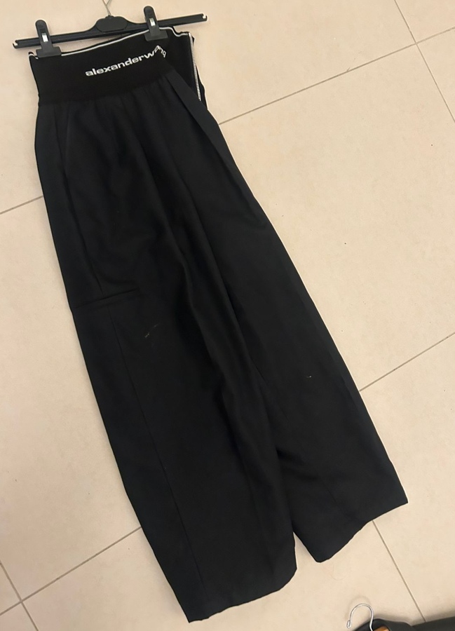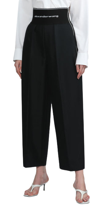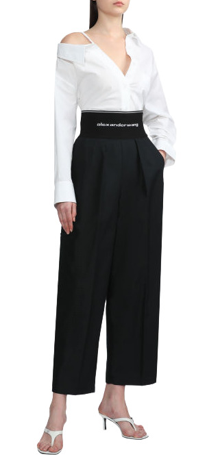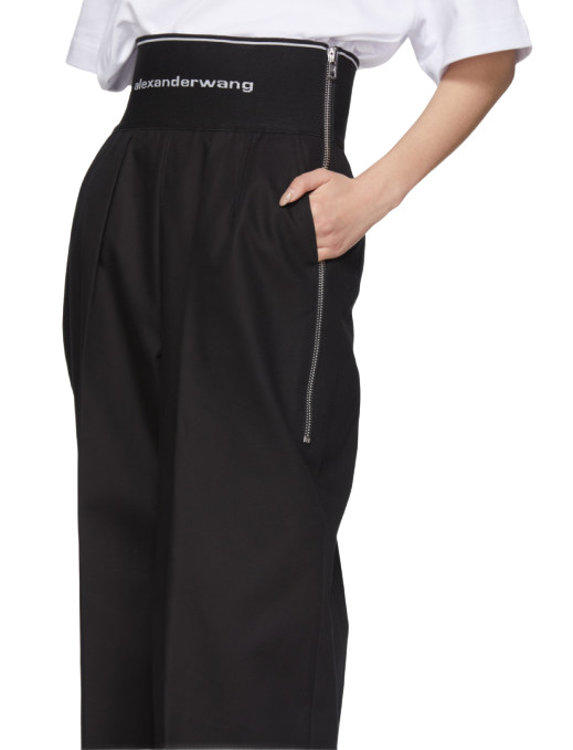 Step out in style with the Alexander Wang High-Rise Wide-Leg Pants. Featuring a trendy logo waistband and crafted from a comfortable cotton-blend, these pants are designed for a flattering high-waisted fit. They boast an exposed zip closure, side pockets, and a welt pocket at the back, combining both fashion and functionality. An essential addition to your wardrobe!
