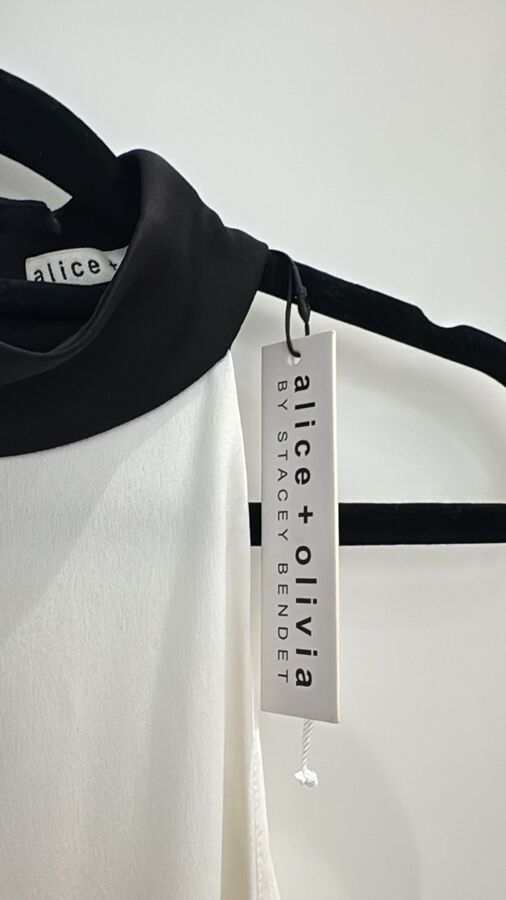 Turn heads in the Alice + Olivia Cataline High-Neck Jumpsuit, a breathtaking creation adorned with striking black highlights. Its effortlessly chic silhouette, featuring a sophisticated high-neck design, radiates contemporary elegance. Perfect for making a grand statement at any event, this jumpsuit is a must-have for your wardrobe!