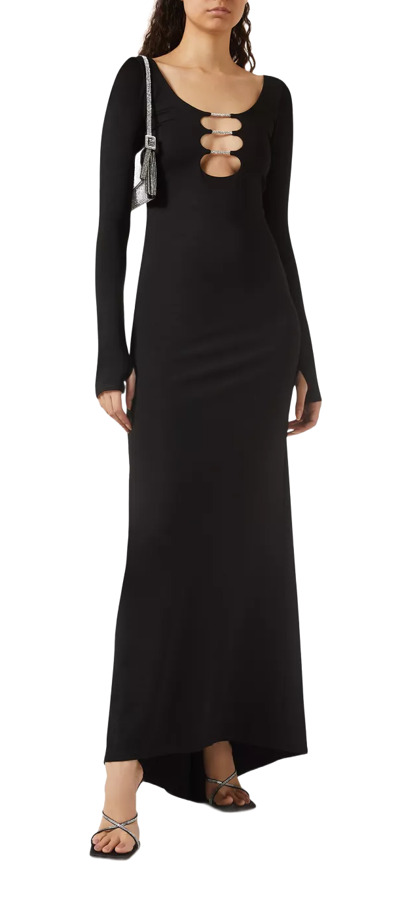 The Alice + Olivia Kalena Maxi Dress is pure modern sophistication! Made from luxe viscose jersey, it sports a flattering scoop neckline and eye-catching front cut-outs decked with fabulous embellishments. With long sleeves for that added flair, this dress is a must-have for chic vibes this season!