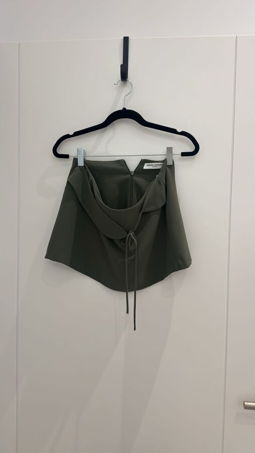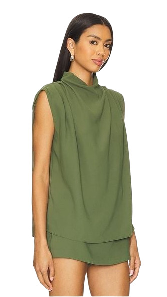 The Amanda Uprichard Sleeveless Fabienne Top features back hook and eye closures, cap sleeves, and pleated accents at the shoulders, crafted from midweight crepe fabric and 100% polyester. This stylish top is complemented by the Mila Skort, which boasts skort styling, a hidden back zip closure, and a self-tie wrap accent. Both pieces are fully lined, making this set a chic and versatile addition to your wardrobe.
