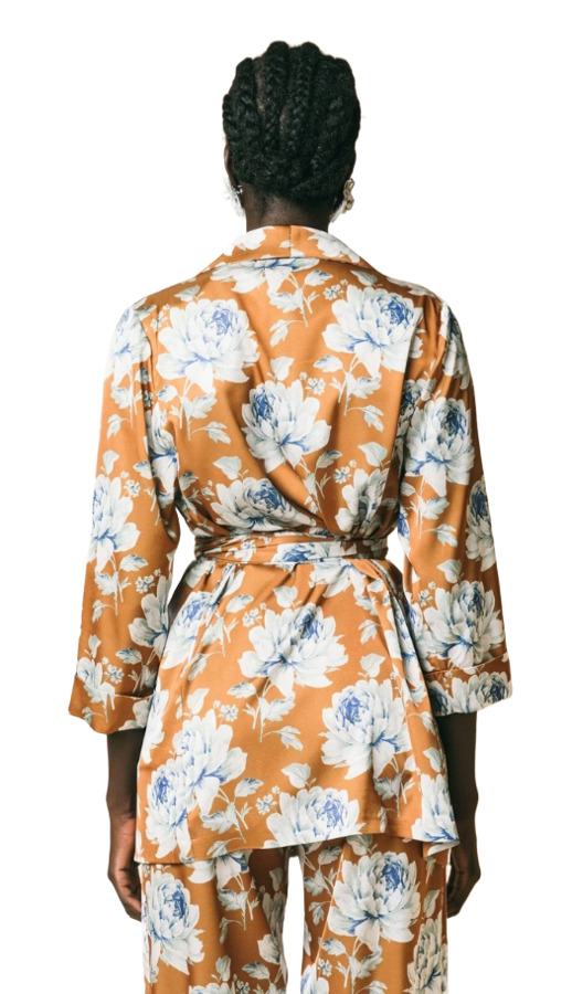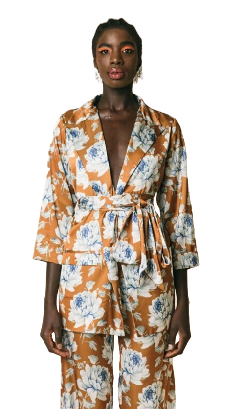 The unstructured jacket by AMBOUTIQUE features a stylish belt, offering versatility and elegance. Paired with palazzo trousers in a vibrant floral print satin, this ensemble combines comfort with sophistication. Perfect for both casual and semi-formal occasions, it showcases a modern aesthetic while celebrating bold patterns and flowing silhouettes. Elevate your wardrobe with this chic and trendy outfit.