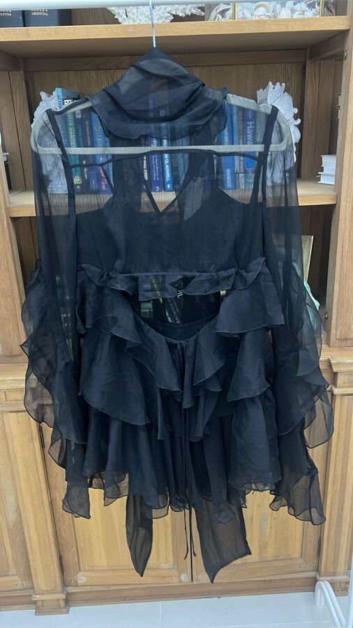 The Anyssa Ruffle Mini Dress by Bardot is a flirty masterpiece! Made of lightweight, 100% polyester chiffon, this semi-sheer stunner features playful ruffled detailing and a chic front cut-out with a drawstring tie closure at the waist. With pull-on styling and a neck tie detail, it’s designed for a head-turning look. Just remember, undergarments may peek through for a daring vibe!