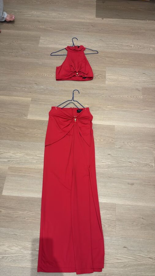 Introducing the Neve Sleeveless Knit Top and Maxi Skirt Set! The halter-style top features a hidden back zip with a hook and eye closure, accented by a chic metal detail in midweight jersey fabric. Paired with the Bardot x REVOLVE Neve Maxi Skirt, which boasts a stylish side slit and a flattering fit, this set is perfect for making a stunning entrance!