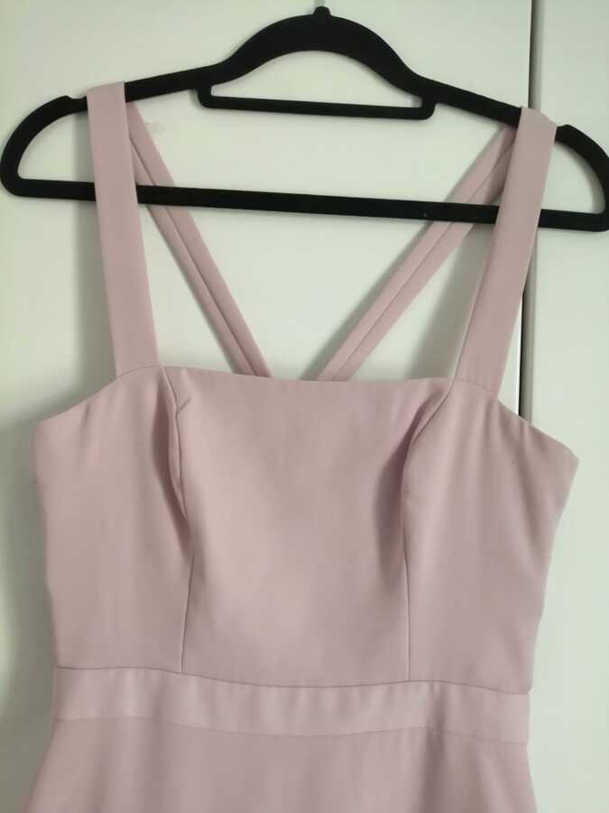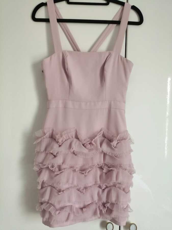 The "Rebecka" dress features a flirty harness top with a charming ruffled skirt. Its square neckline adds a stylish touch, while the back straps have elastic for comfort and stretch. Lined for added elegance, this dress is perfect for casual outings or special occasions, blending comfort and style effortlessly.