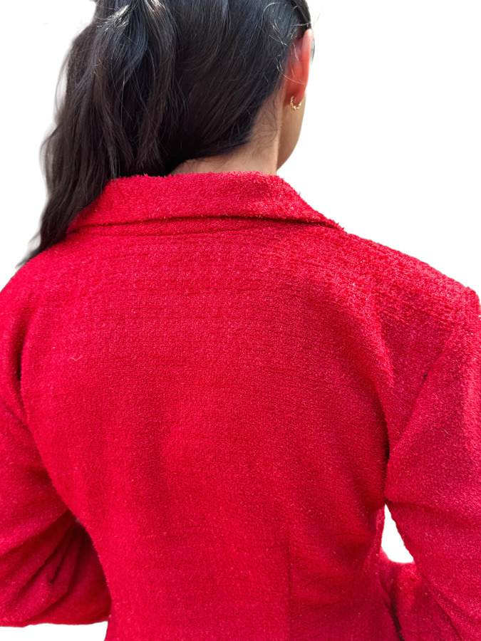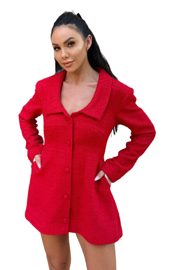 Make a bold festive entrance in the Holly Coat Dress. This statement red mini features a tailored silhouette, covered buttons, and a wide structured collar for chic coat-meets-dress appeal. Classic yet modern, it’s perfect for Christmas dinners, holiday parties, and stylish winter brunches that call for standout style.