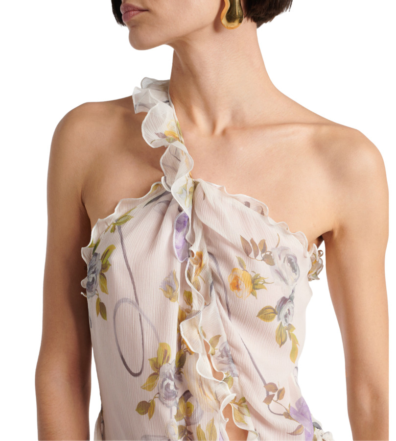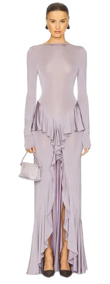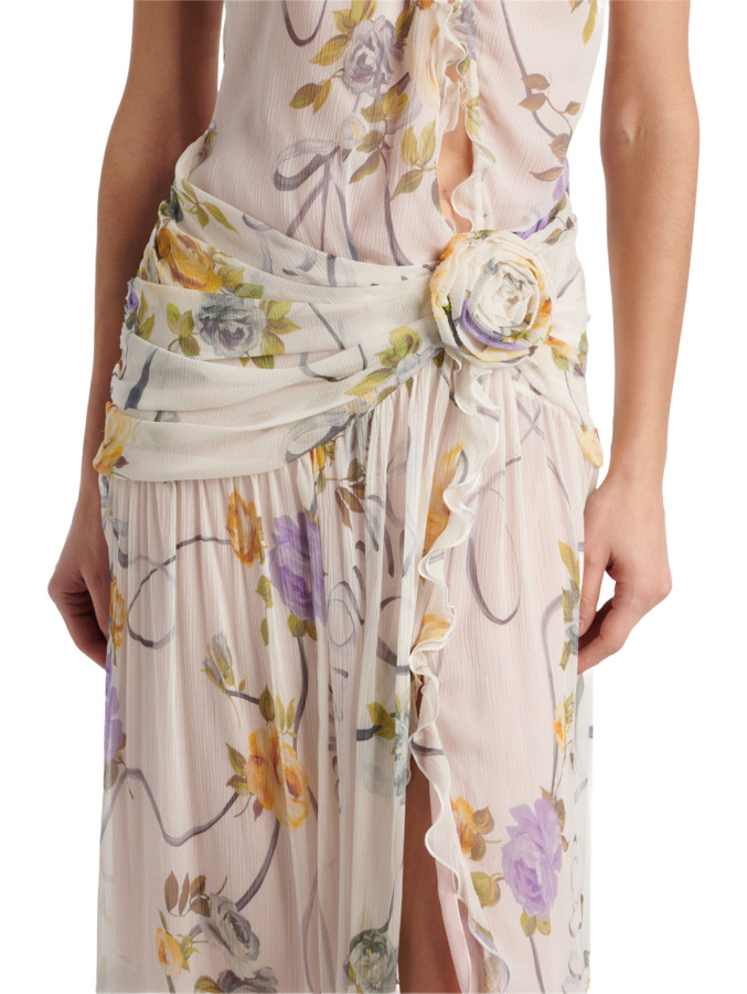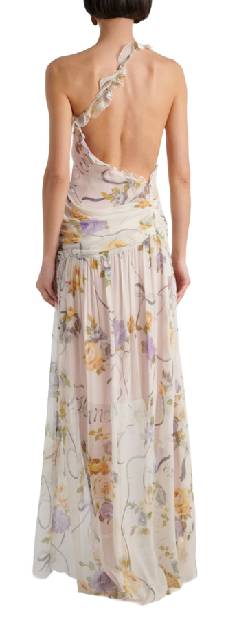 Turn heads in this multicoloured Wisterie Violet/Whit floral silk creponne maxi dress by Blumarine. Its dreamy flow, luxe 100% polyester lining, and bold romantic vibe make it the ultimate statement piece. Wear it when you want all eyes—and compliments—on you.