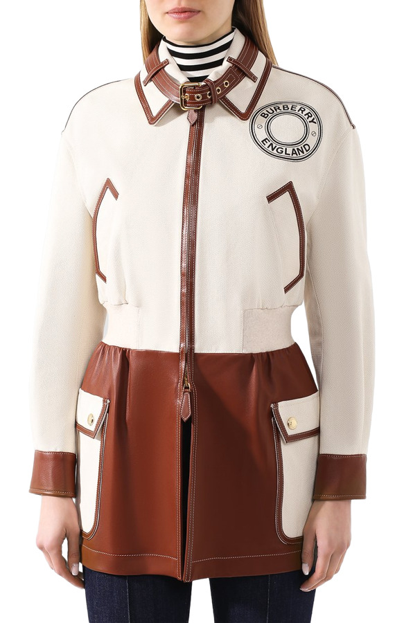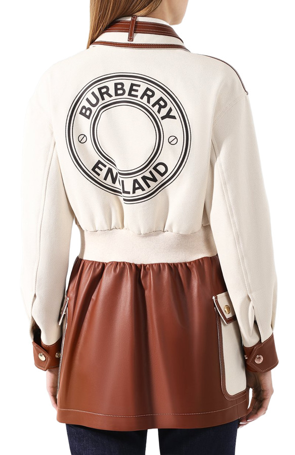 Classic with a bold designer edge, this Burberry London Beige/Brown Logo Print Canvas and Leather Zip-Up Jacket blends iconic logo print with sleek leather accents. A statement layering piece that brings effortless luxury and street-style attitude to any look.