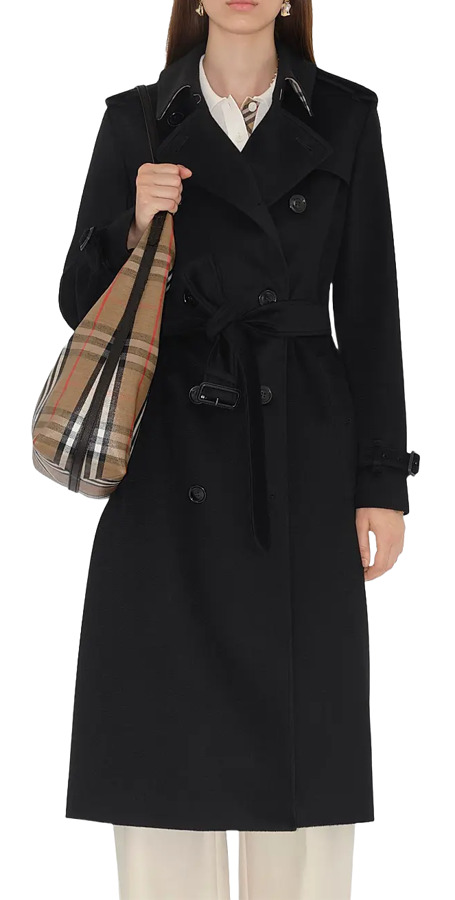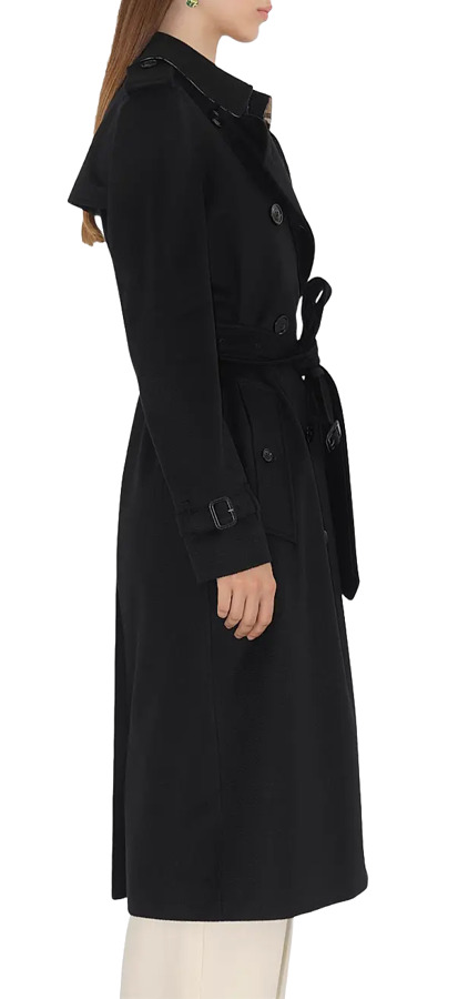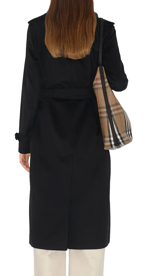 Iconic and impeccably crafted, Burberry’s Kensington Trench Coat is reimagined in waterproof, windproof cashmere. Featuring a classic double-breasted silhouette, belted waist, and signature Burberry Check undercollar, this fully lined Italian-made trench delivers timeless luxury with modern protection—an elevated outerwear essential for effortless sophistication.