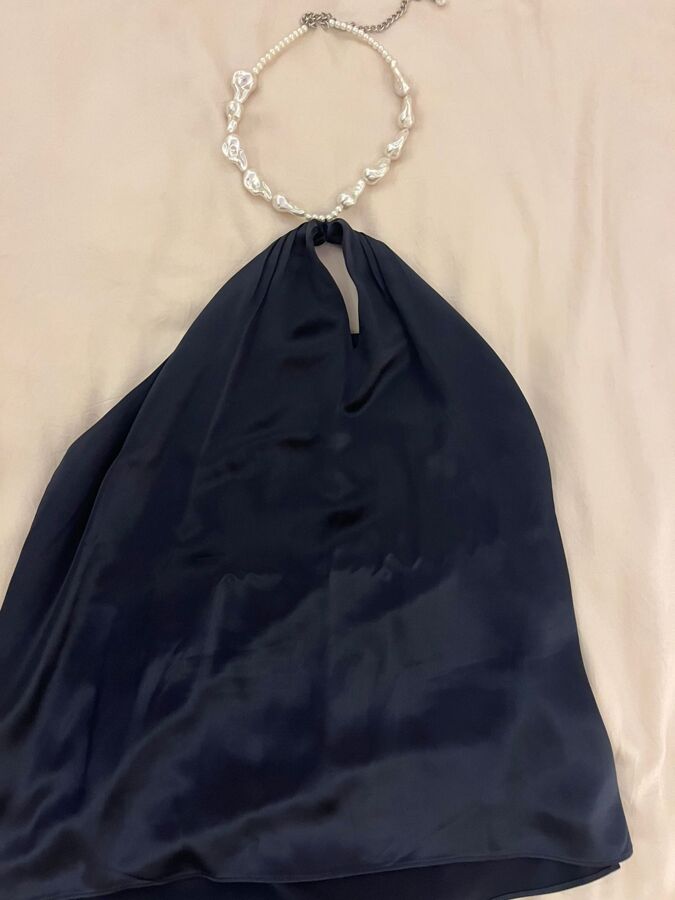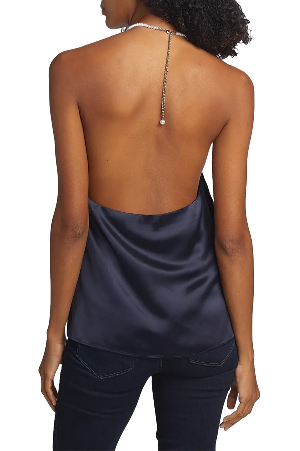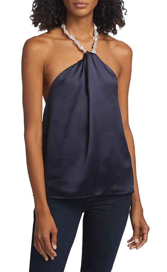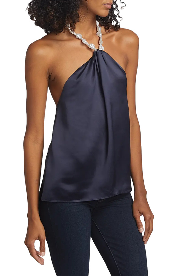 Turn up the shine with Cami NYC’s Elody Camisole. Crafted from lustrous satin, this sleeveless halter top features a sleek lobster-clasp neckline and an open back for a sultry finish. Made from a luxe acetate blend, it’s the perfect piece for elevated nights out or polished layering moments.