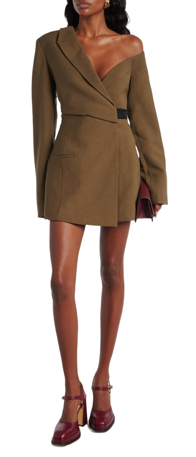 This Mini Dress in Stretch Crepe Knit captures confidence and ease with its fluid, above-the-knee silhouette. Crafted from soft stretch crepe, it features elegant waterfall draping that cascades from shoulder to hip, creating sculptural movement. Designed for the modern muse, it contours the body with refined grace, offering a sophisticated, statement-making finish.