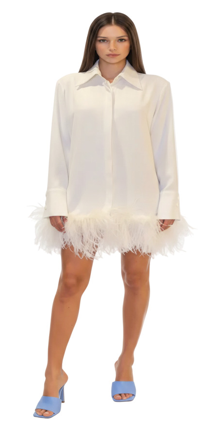 The C/MEO Collective Over Again Dress in ivory features a mid-weight woven textured fabric and a fitted midi silhouette. It has a fully lined bodice, a draped front detail at the skirt, and pin tucking at the bust, creating a sophisticated and elegant look perfect for any occasion.