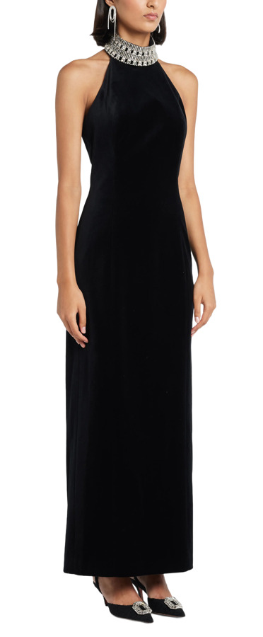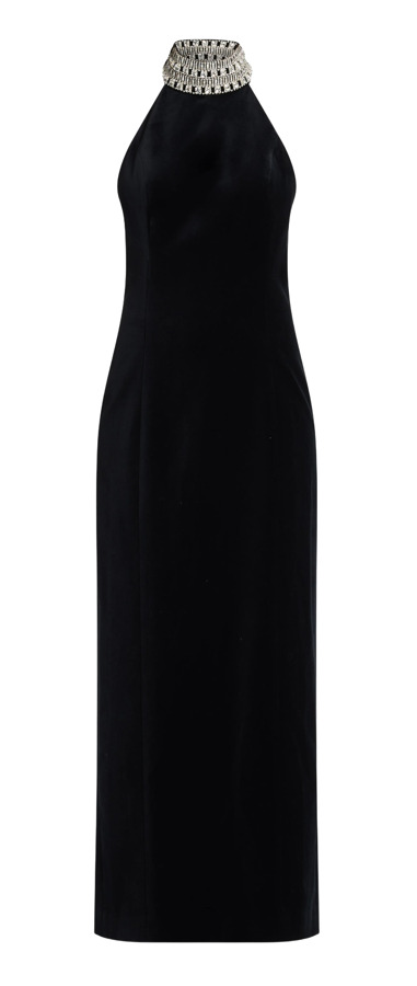 This halter-neck maxi evening dress is a showstopper with its crystal-embellished high collar, adding a touch of glamour. The figure-hugging silhouette creates an elegant, sleek look. A concealed back zipper and a back slit ensure ease of wear and comfort. Ideal for special occasions, weddings, and evening events—this dress guarantees you’ll stand out in style!