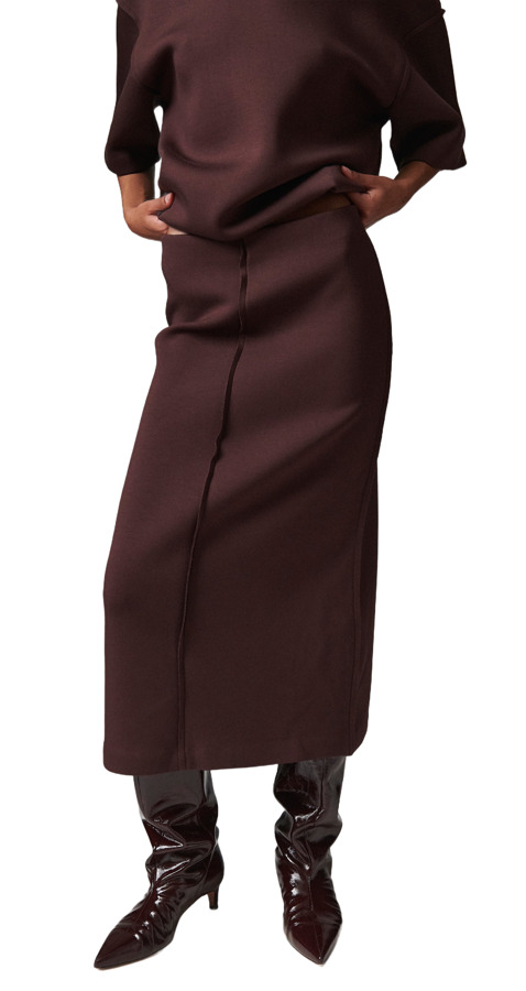 Meet the Suzie Midi Skirt—your new wardrobe essential! With a stretchy scuba texture and a slight A-line silhouette, it hugs the waist and flows to mid-length. The elasticated waistband and raised seams add flair to this slim-fitting piece. Perfect for polished or casual looks, it elevates any outfit effortlessly. Dress it up or down and step out in style!