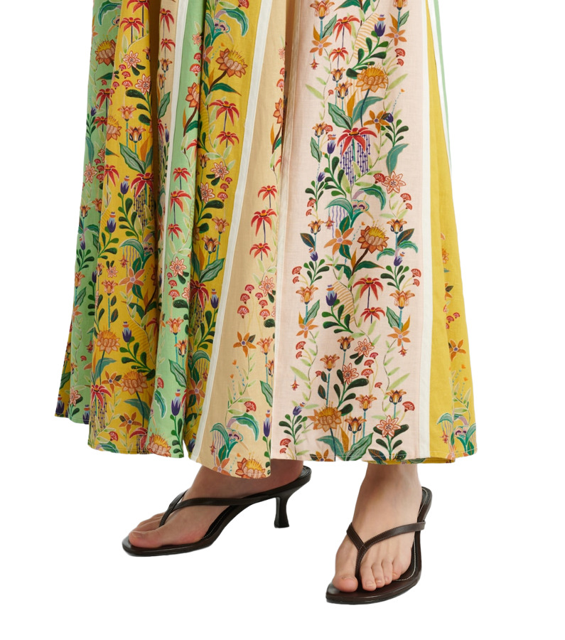Serve tropical elegance in the Off-White Blue Yard Sleeveless Maxi Dress by FARM Rio. Designed with a halter neckline, bold blue botanical print, fringe-trim hem, and a sultry side slit, this flowing maxi is made to move. Perfect for beach vacations, summer brunches, and sun-drenched days.