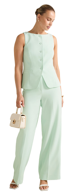 Enhance your wardrobe with this Tailored Waistcoat and High-Rise Pants Set! The waistcoat features a fitted silhouette, smooth woven fabric, boat neckline, and button-through front with welt pockets. Paired with high-rise pants in comfortable fabric, this set offers a relaxed fit and zip front/hook fastening. Both pieces are lined, perfect for sophisticated occasions!