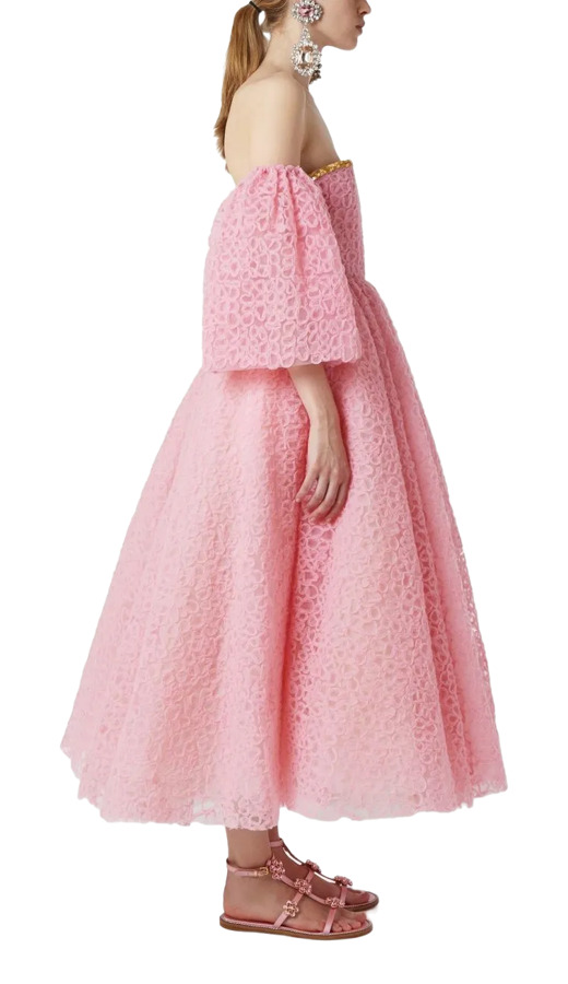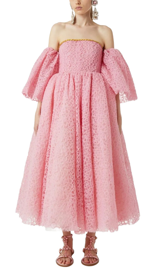 Embrace timeless elegance with the Giambattista Valli Lace-Embroidered Midi Dress. True to the label's refined aesthetic, this stunning pink dress features exquisite lace embroidery, adding a delicate touch to its sophisticated silhouette. Perfect for any special occasion, this dress captures the essence of femininity and grace!