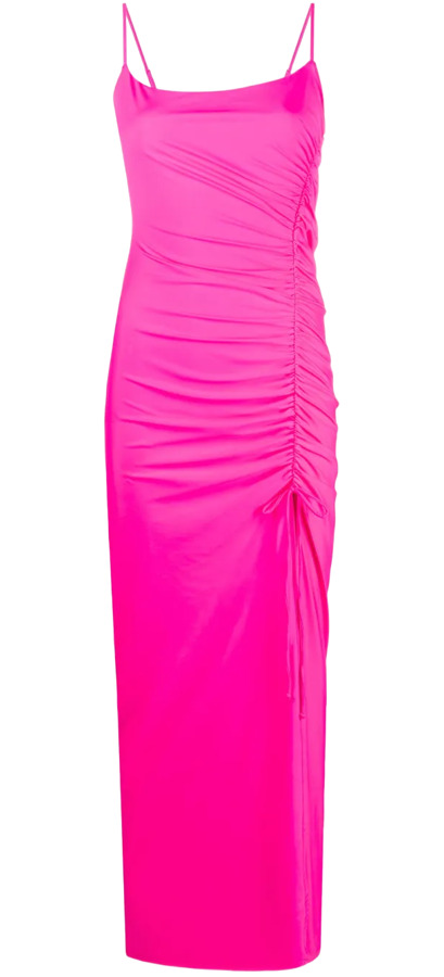 The GOOD AMERICAN Ruched Maxi Slip Dress in stretch-satin is a universally flattering wardrobe staple. Crafted with premium fabric and the brand’s obsession with fit, it features strategic ruching for a sculpted silhouette and a sleek slip shape that flatters every figure. Comfortable, confident, and effortlessly chic—this maxi blends glam with everyday wearability.