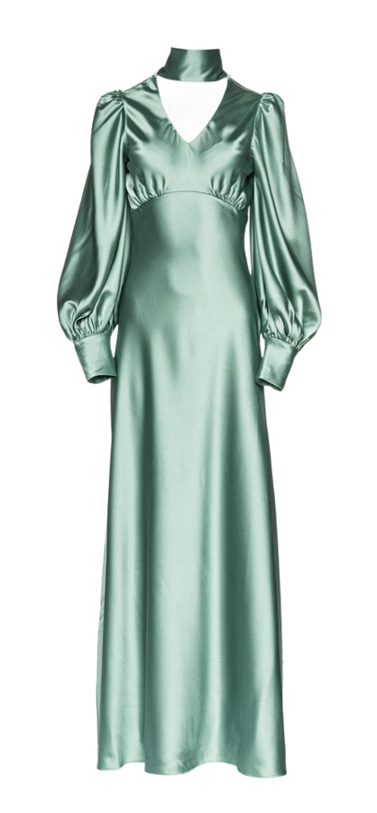 Green Printed Silk Ruffle Detail Backless Maxi Dress