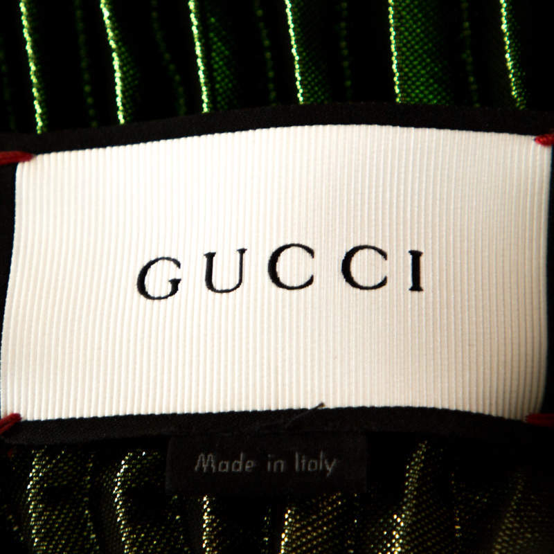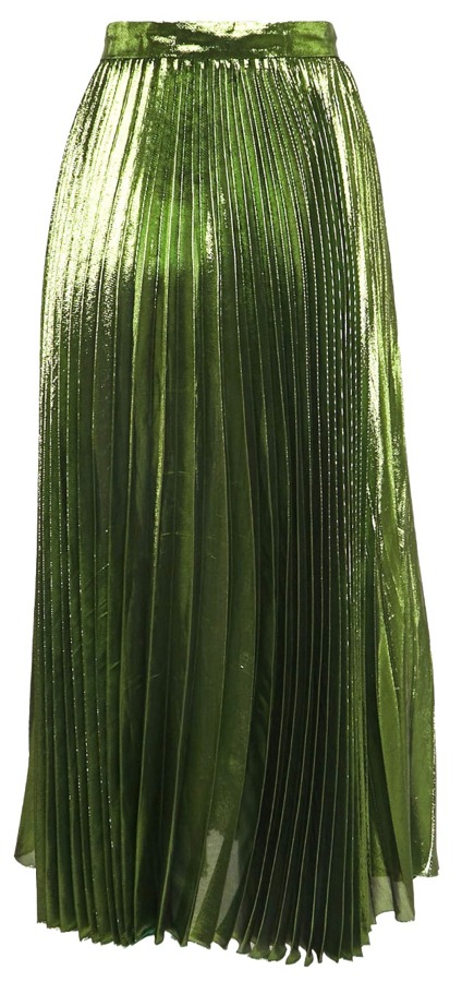 Metallic Green Lamé Silk Plisse Midi Skirt