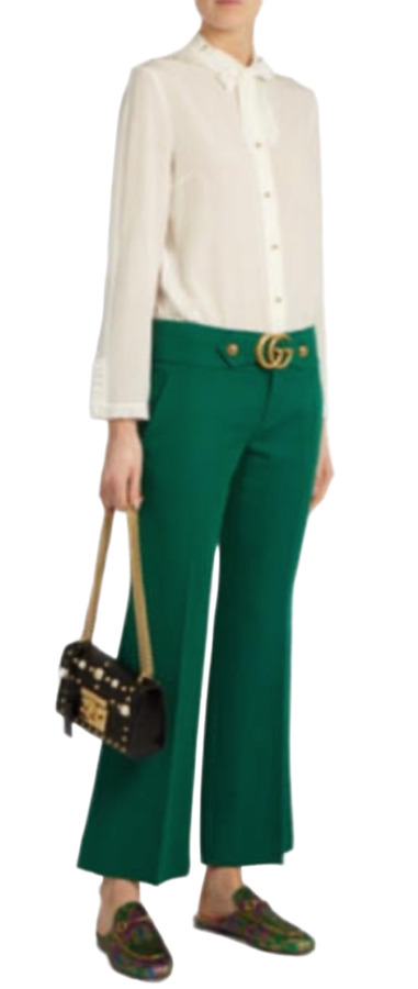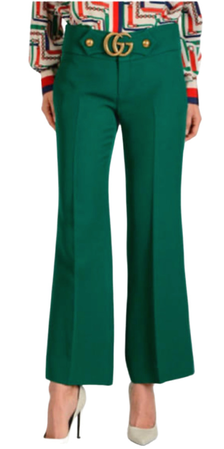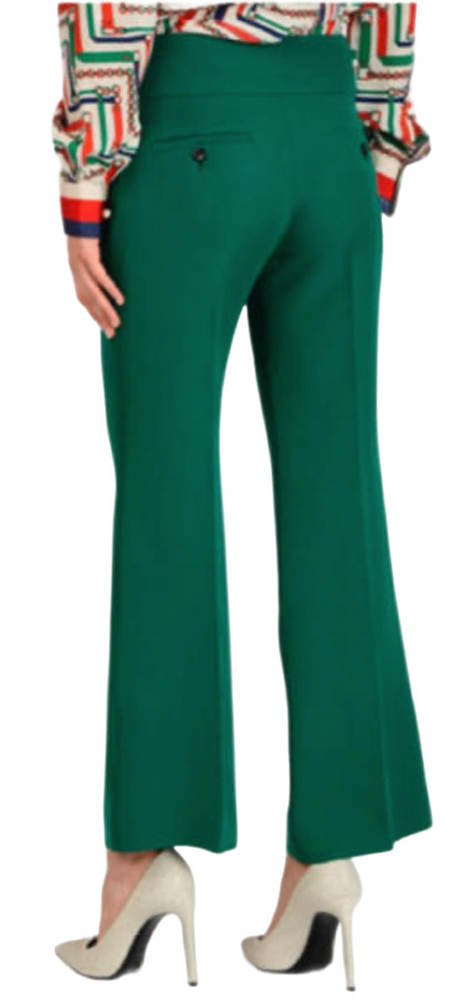 These Gucci wide-leg pants by Alessandro Michele feature a striking green hue and a flattering mid-rise design. With practical slit pockets and a secure zip and button closure, they combine comfort and sophistication seamlessly. Perfect for versatile styling, dress them up or down for any occasion!