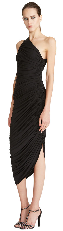 The Reia One-Shoulder Dress in Black by Halston is the definition of timeless sophistication with a modern edge. Cut in a sleek, body-skimming silhouette, it features a dramatic one-shoulder neckline that adds instant glamour. Effortless yet striking, this dress is perfect for cocktail parties, formal evenings, or any occasion where you want to channel that signature Halston elegance with a contemporary twist.