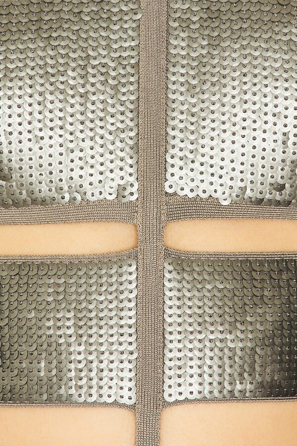 The Nova Gown by Herve Leger is a showstopping piece featuring a fully lined design and a hidden back zipper with hook and bar closure. The bandage-style bodice hugs your curves, while the sequin-embellished fabric adds an extra touch of sparkle and elegance. Perfect for those who want to make a bold statement at any event.