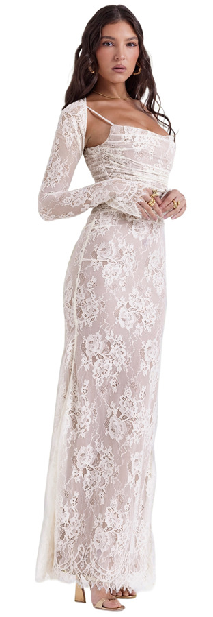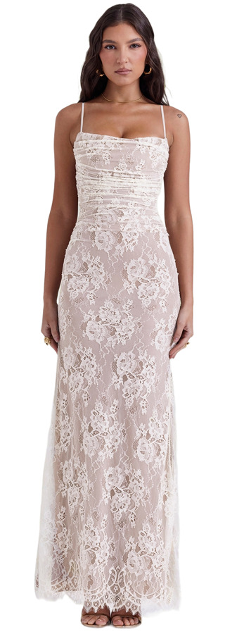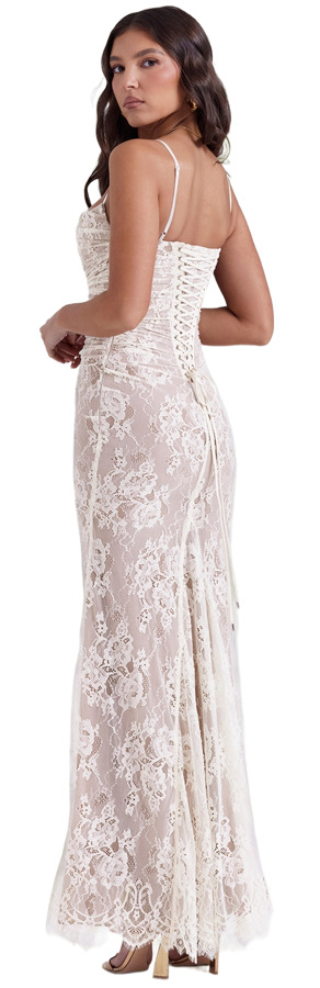 Embrace pure romance in ‘Artemis’, a floor-sweeping lace masterpiece crafted with delicate detailing and our signature café-au-lait power mesh for a sculpted, cinched silhouette. The corseted bodice is softly gathered and finished with enchanting lace-up back detailing. Skimming every curve and closing with a sleek side zip, Artemis is elegance woven into every inch.