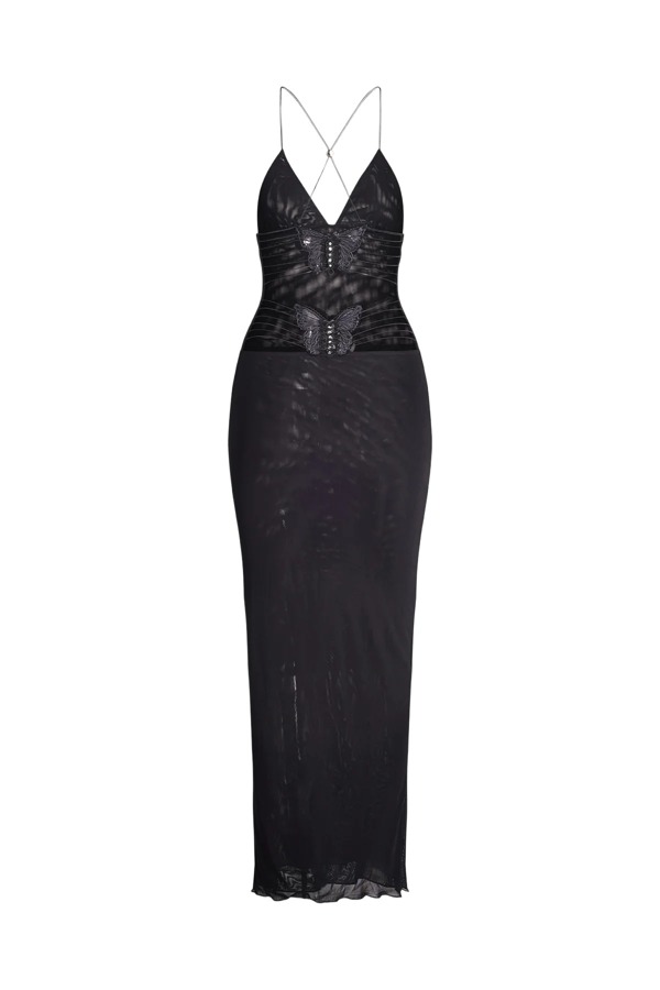 The Ellery dress is designed to turn heads. Designed with a buttery mesh fabric and adjustable silver bead detail at the back to perfectly hug your silhouette.