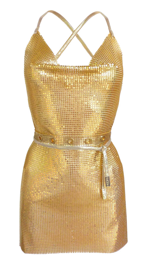 The Elysia Belted Dress Gold features a stylish cowl neckline, cross straps at the back, and a deep open-back design. With side slits and a mini length, this dress is adaptable for any event. Made from recycled aluminum, it promotes sustainability while being hypoallergenic and resistant to tarnishing and rust. A chic, long-lasting investment for your wardrobe!