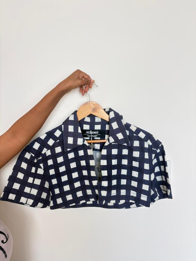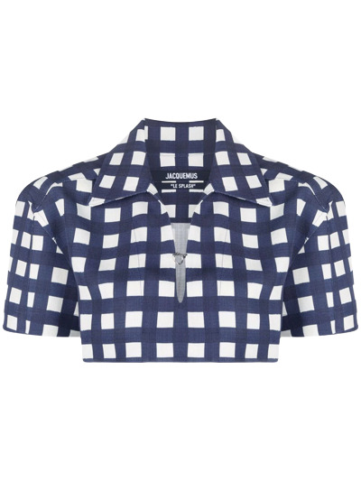 A fresh take on classic tailoring, the Jacquemus check pattern cropped shirt features a structured yet playful silhouette in a crisp blue palette, offering a modern, effortless statement for everyday styling.