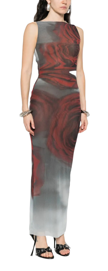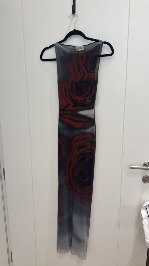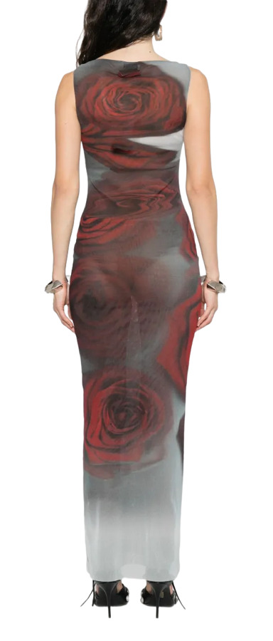 This Jean Paul Gaultier Rose-Print Midi Dress embraces a snug fit and elegant boat neck design. Crafted from stretchy 100% polyamide, it features a playful tulle lining that adds volume and flair. Made in Italy, this dress beautifully merges comfort and style, making it a standout choice for any occasion!