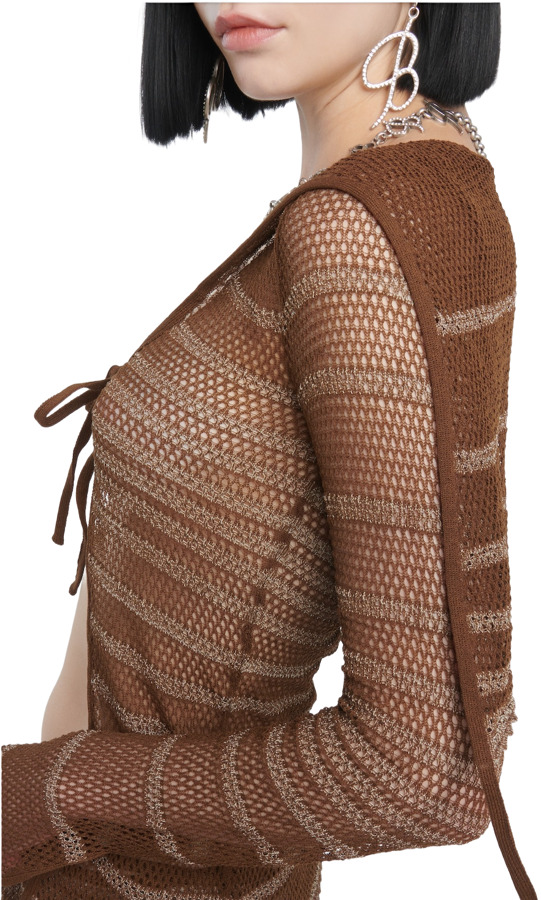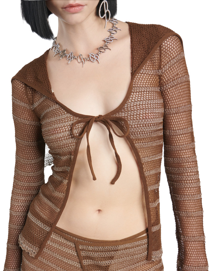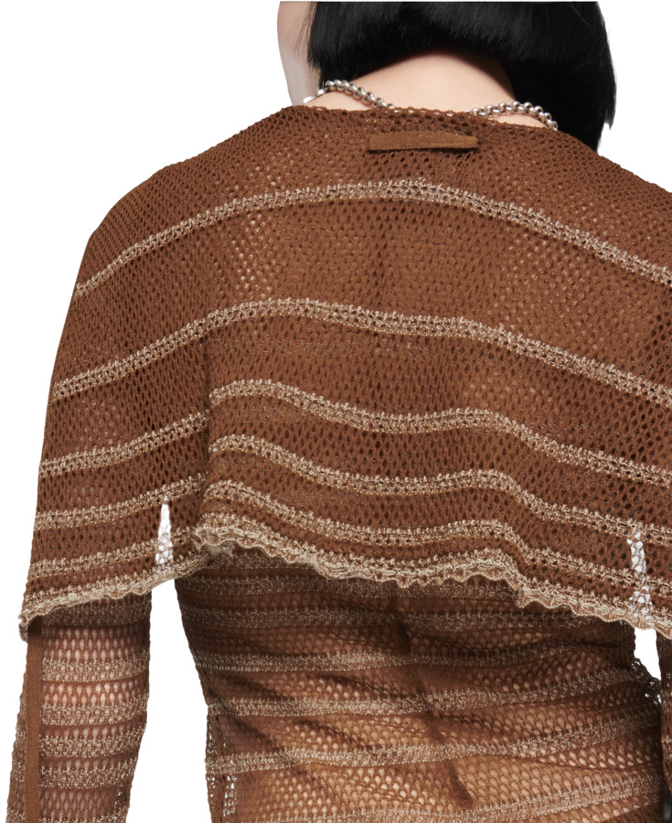 The Jean Paul Gaultier x KNWLS crochet cardigan is a striking mix of craftsmanship and edge. With intricate crochet work and a sleek, body-skimming fit, it reflects Gaultier’s avant-garde vision while channeling KNWLS’ rebellious spirit. A versatile piece that can be layered or worn solo, it’s designed to bring statement-making energy to any look.
