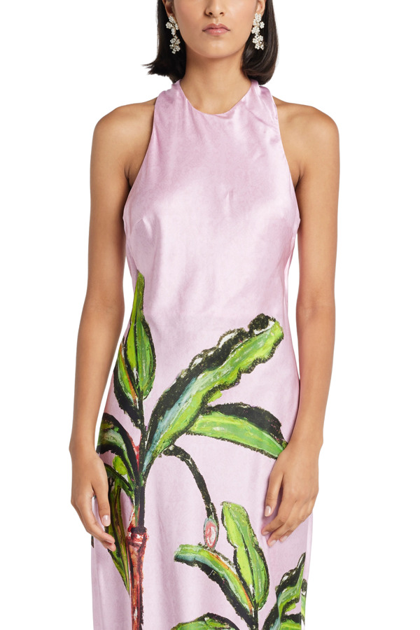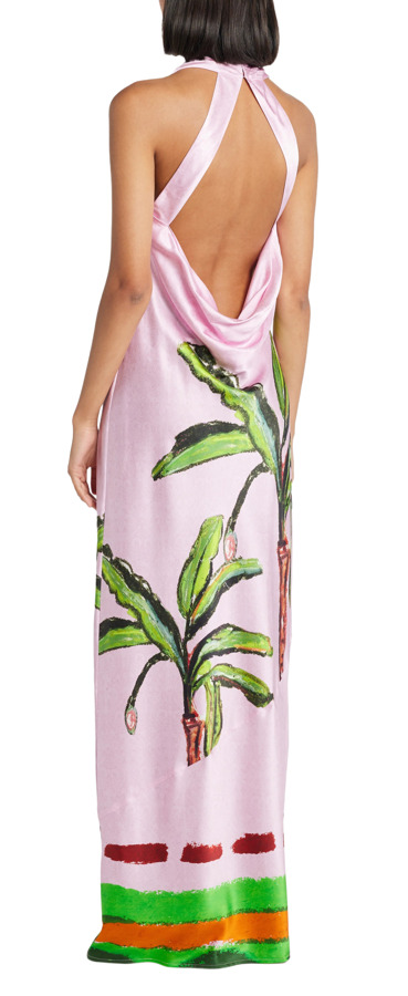 The Kumulau Draped-Back Maxi is a pure silk masterpiece that effortlessly flows with a liquid-like fall. The elegant halter neckline contrasts beautifully with the sculptural open back, revealing just the right amount of skin for a confident, dramatic look. Featuring a hand-painted Kumulau print, this dress elongates the body while adding movement. Perfect for warm-weather events, it’s versatile enough to wear barefoot on the beach or elevated with gold jewelry and heels. Lightweight, breathable, and full of impact—this is the dress you’ll reach for first.