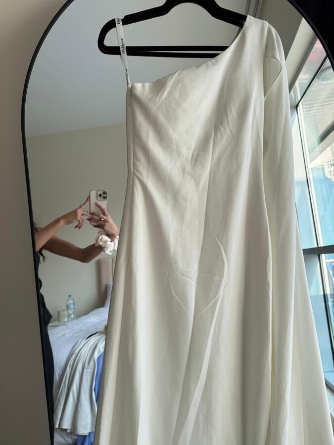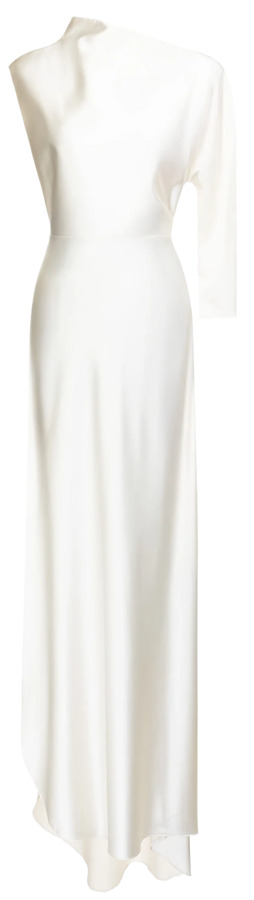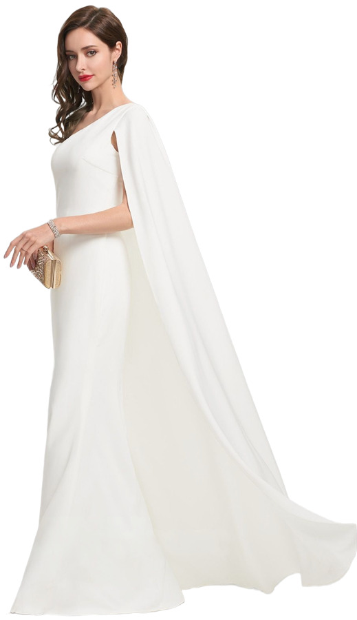 The Sheath/Column One-Shoulder Floor-Length Stretch Crepe Gown by JJ’s House is a sleek and modern bridal choice. Designed with a clean one-shoulder neckline and a figure-skimming silhouette, it highlights the body with understated elegance. The stretch crepe fabric adds comfort and movement while maintaining a refined structure. Perfect for the minimalist bride, this gown embodies timeless sophistication with a contemporary twist.
